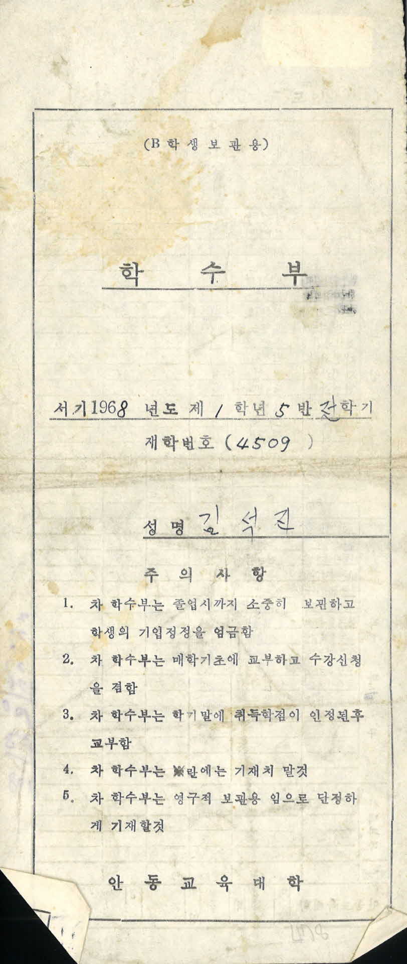 | 기록물명 | 안동교육대학 수강신청서 | ||