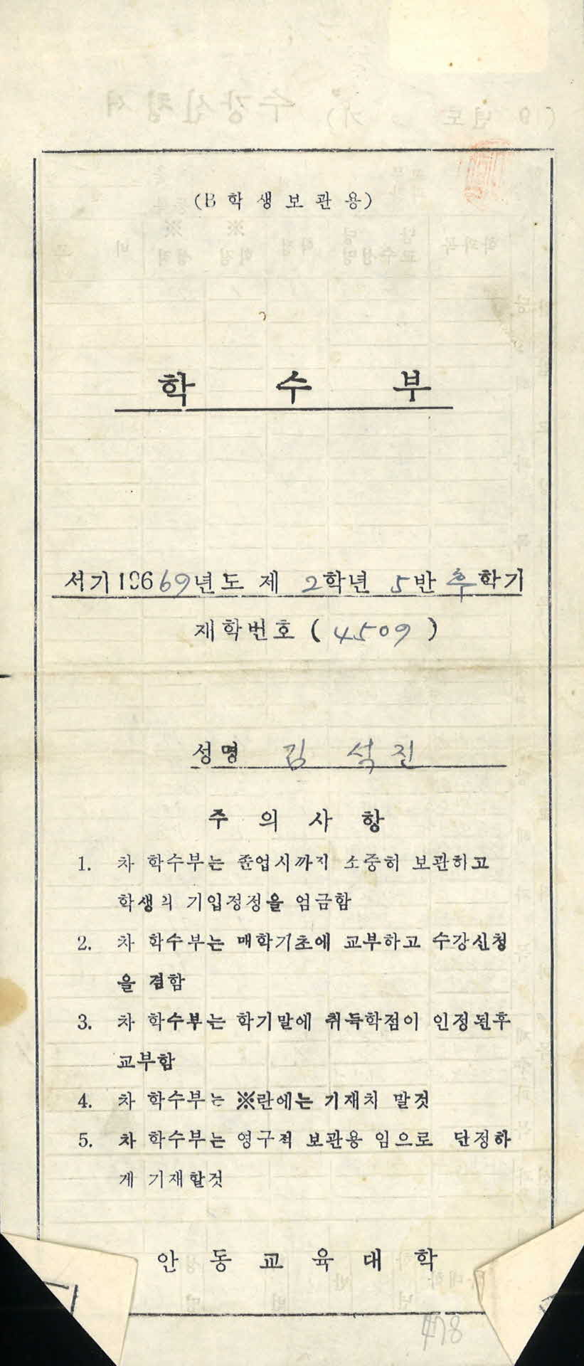 | 기록물명 | 안동교육대학 수강신청서 | ||