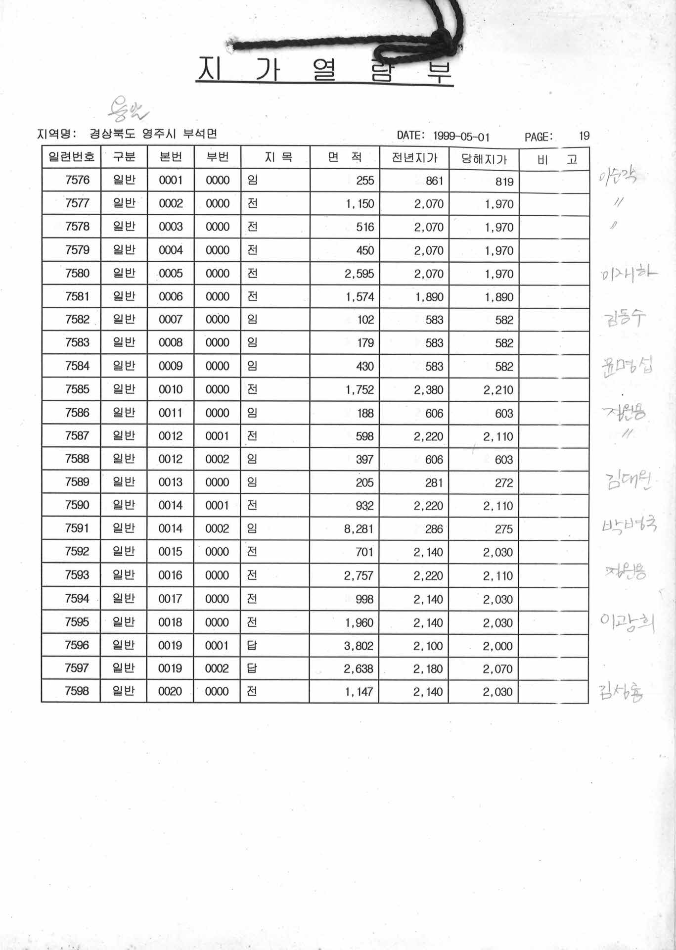 부석면 지가열람부 19-101 > 영주, 영주사람