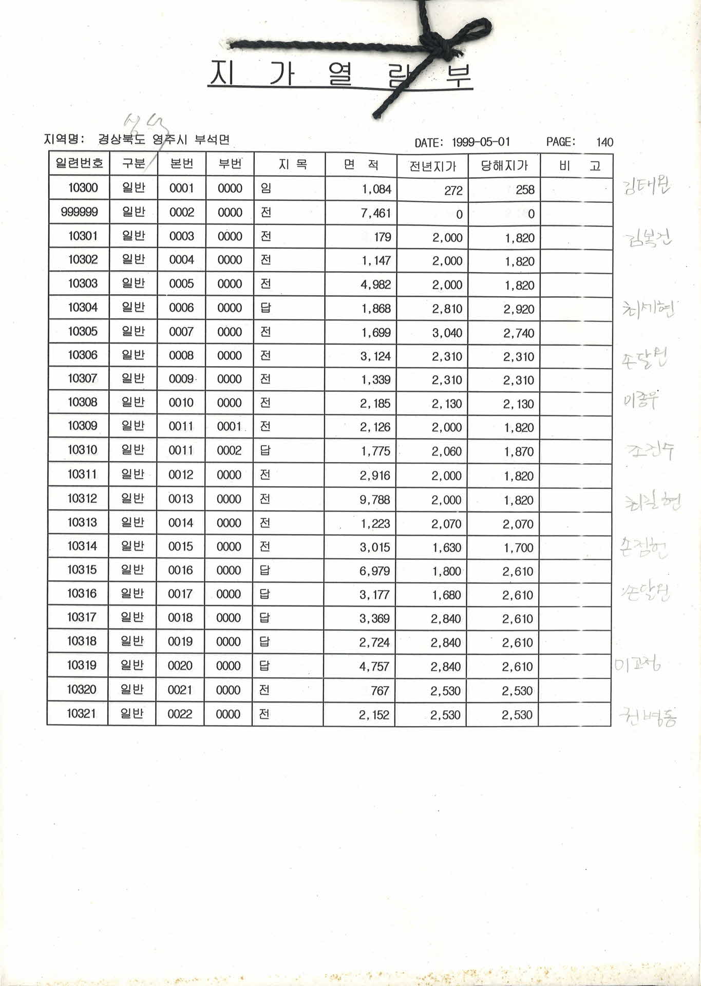 부석면 지가열람부 140-183 > 영주, 영주사람