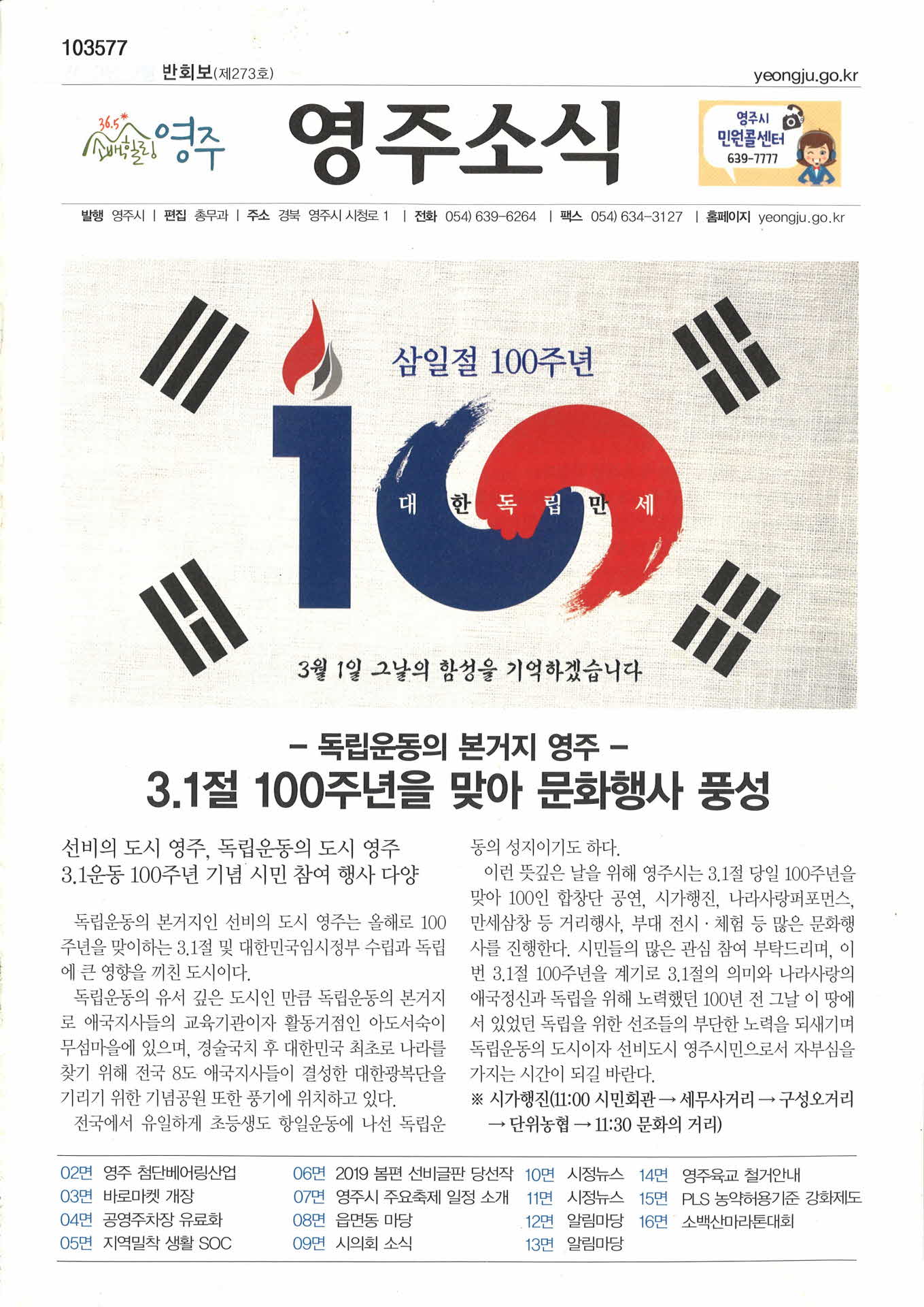 * 본 홈페이지에 게시된 게시물의 저작권은 영주문화원에 있으며, 이를 위반시 정보통신망법에 의해 처벌됨을 유념하시기 바랍니다.