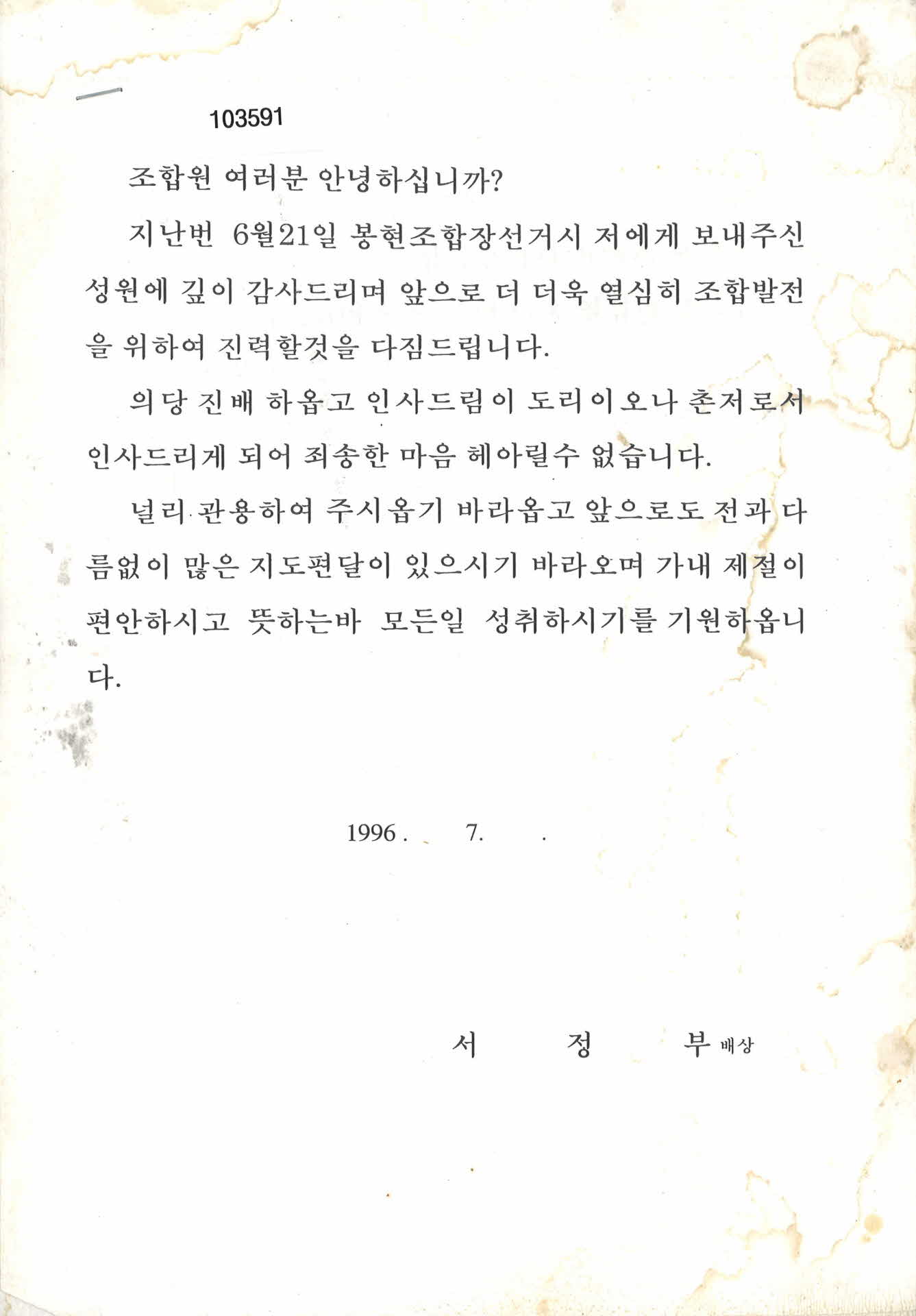 조합 낙선 인사장