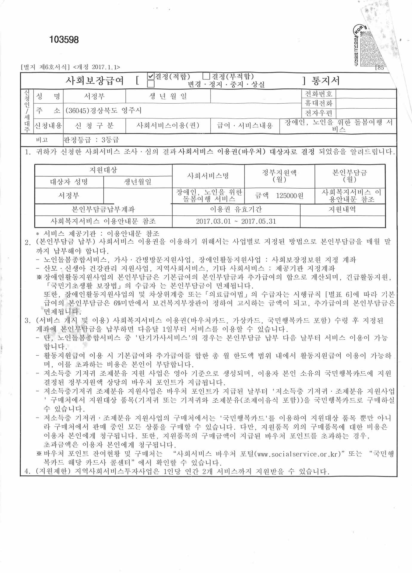 보건복지부 사회보장급여 결정 통지서