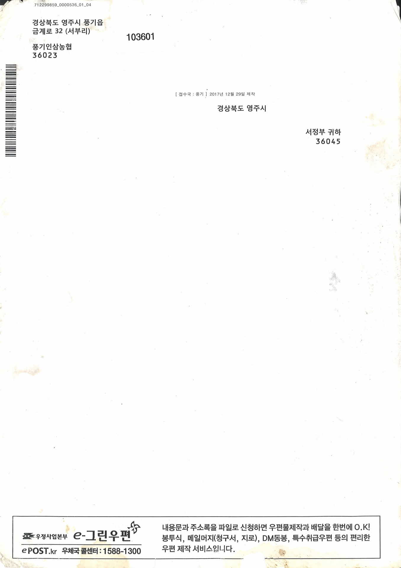 | 기록물명 | 풍기인삼농협 우편봉투 | ||