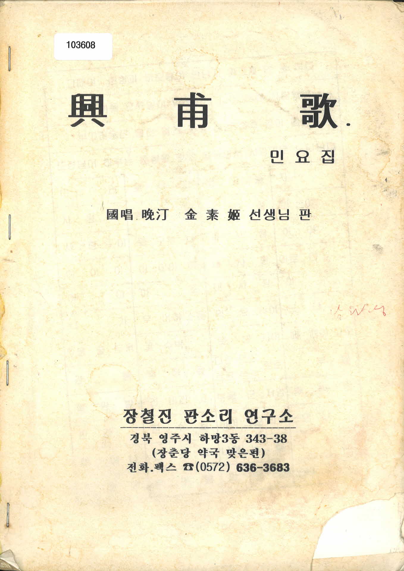• 장철진 판소리 연구소 「흥보가」 민요집