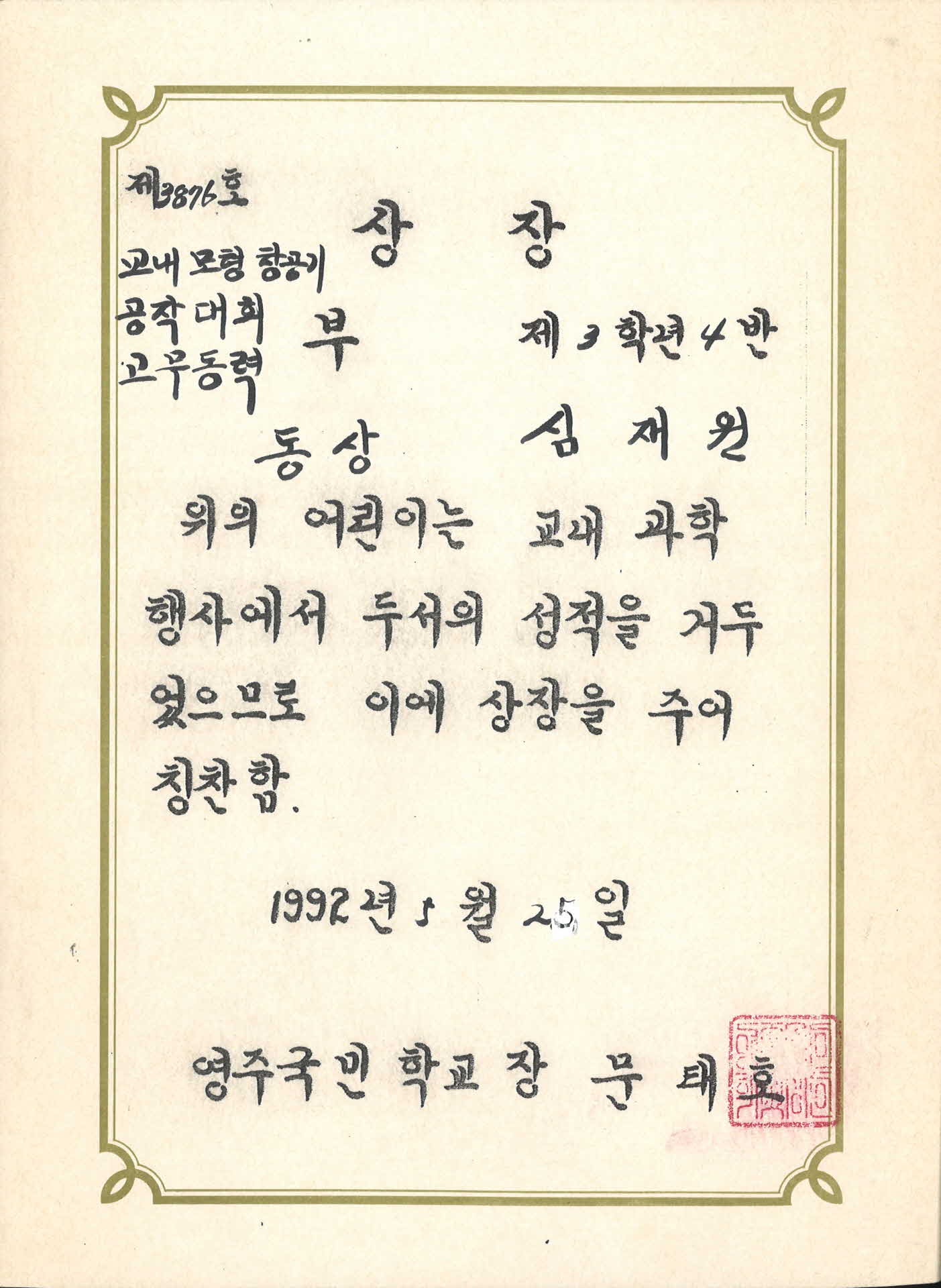 | 기록물명 | 영주국민학교 과학행사 동상 상장 | ||