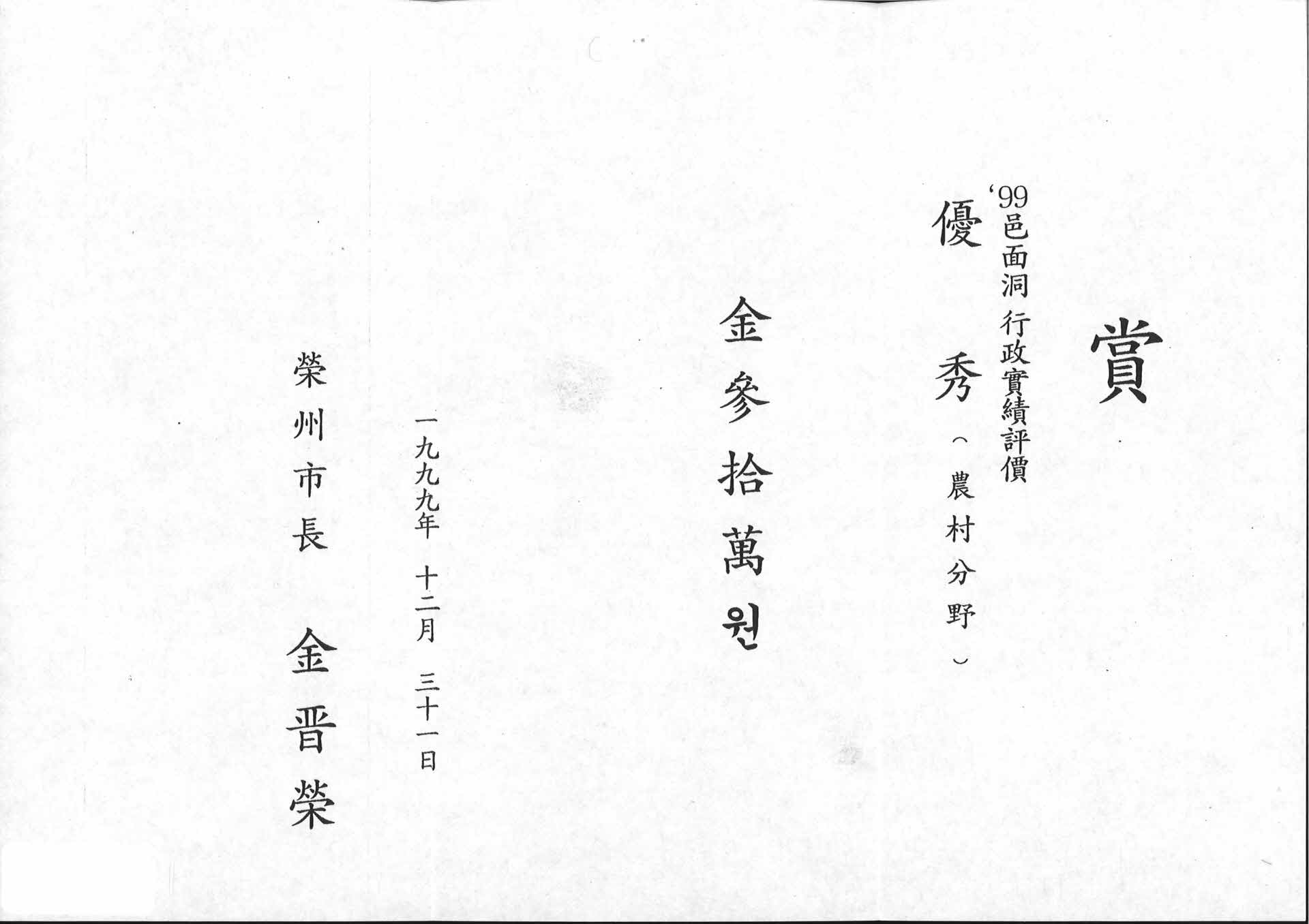 | 기록물명 | 읍면동 행정 실적평가 상장 | ||