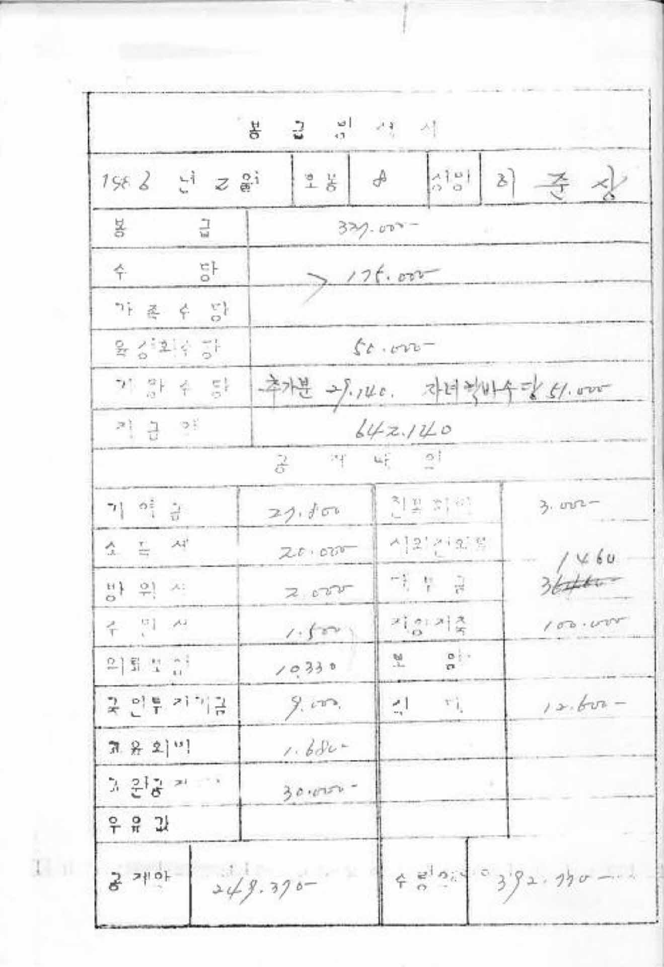 | 기록물명 | 1986년 2월 교사 봉급계산서 | ||