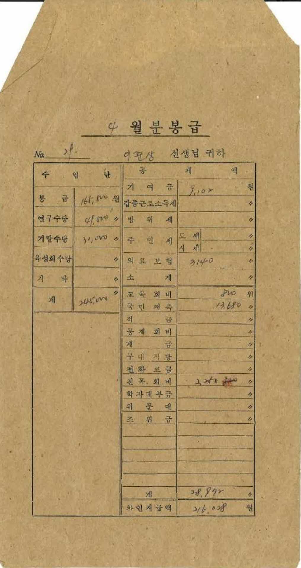 | 기록물명 | 1980년 4월 교사 봉급계산서 봉투 | ||