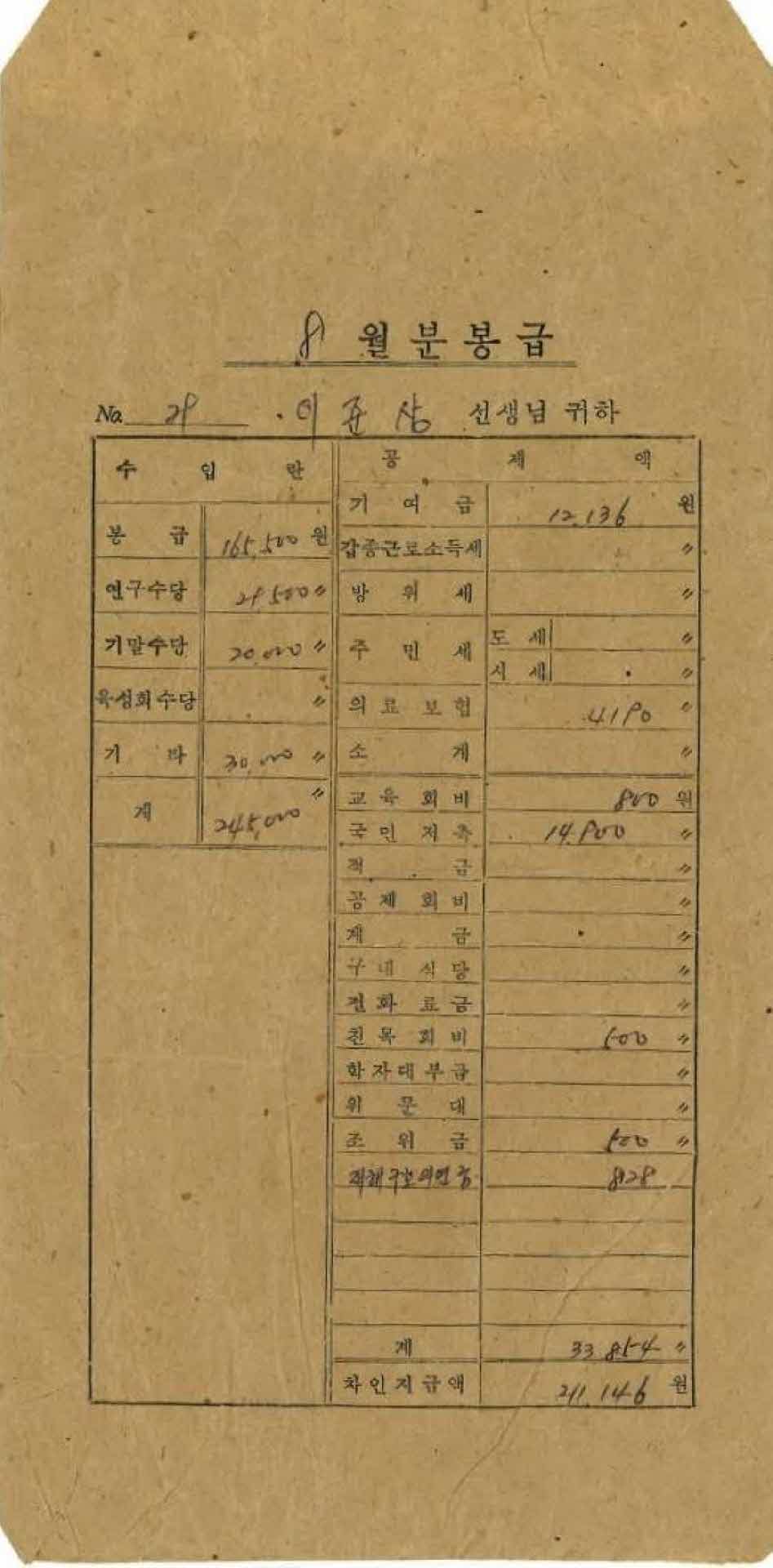 | 기록물명 | 1980년 8월 교사 봉급계산서 봉투 | ||