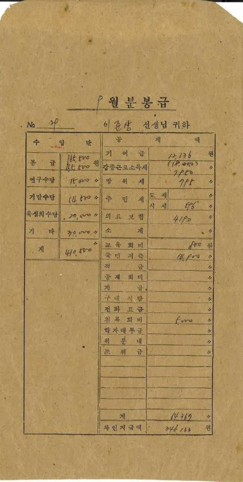 | 기록물명 | 1980년 9월 교사 봉급계산서 봉투 | ||