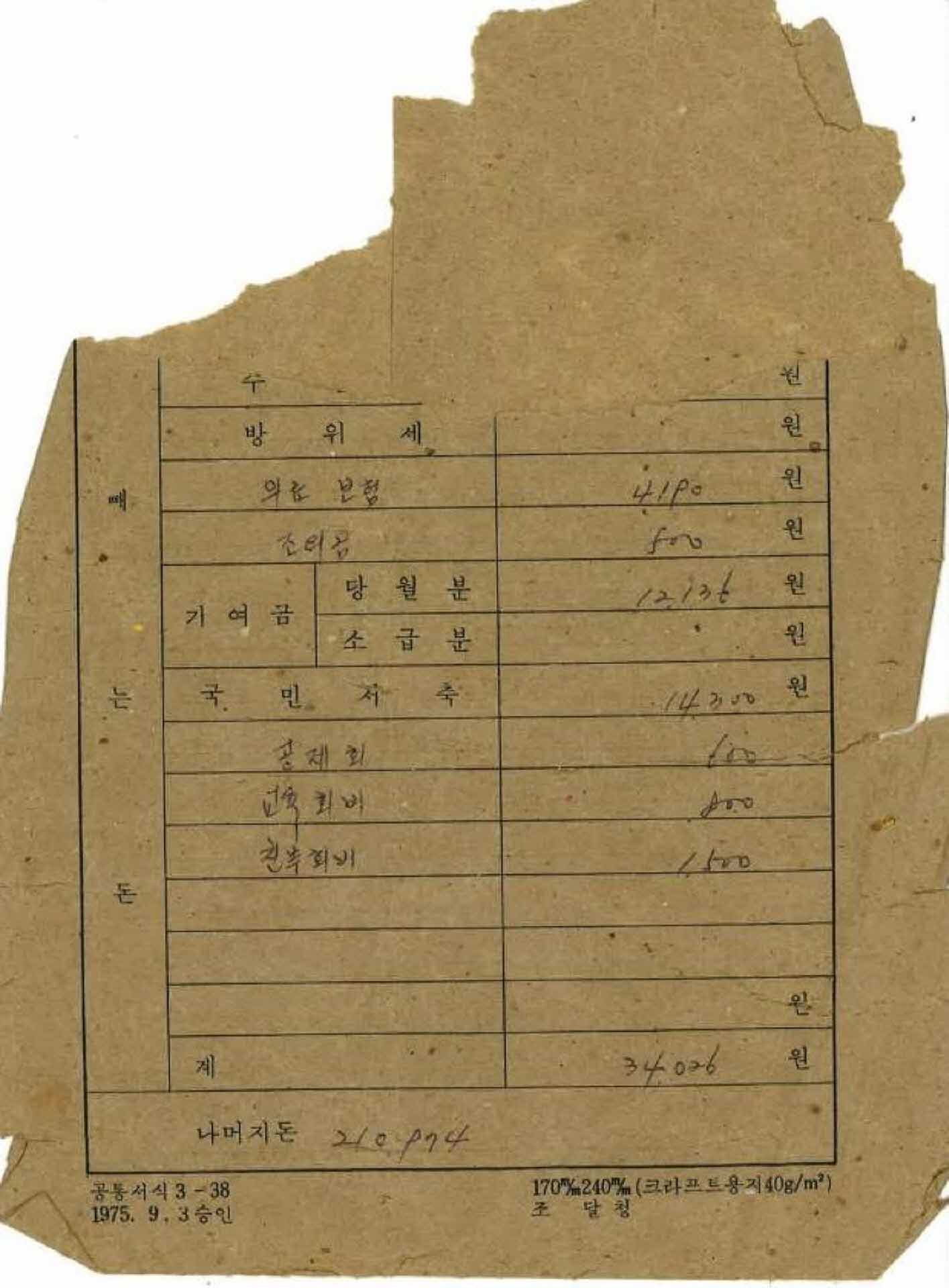 | 기록물명 | 1980년 10월 교사 봉급계산서 봉투 | ||