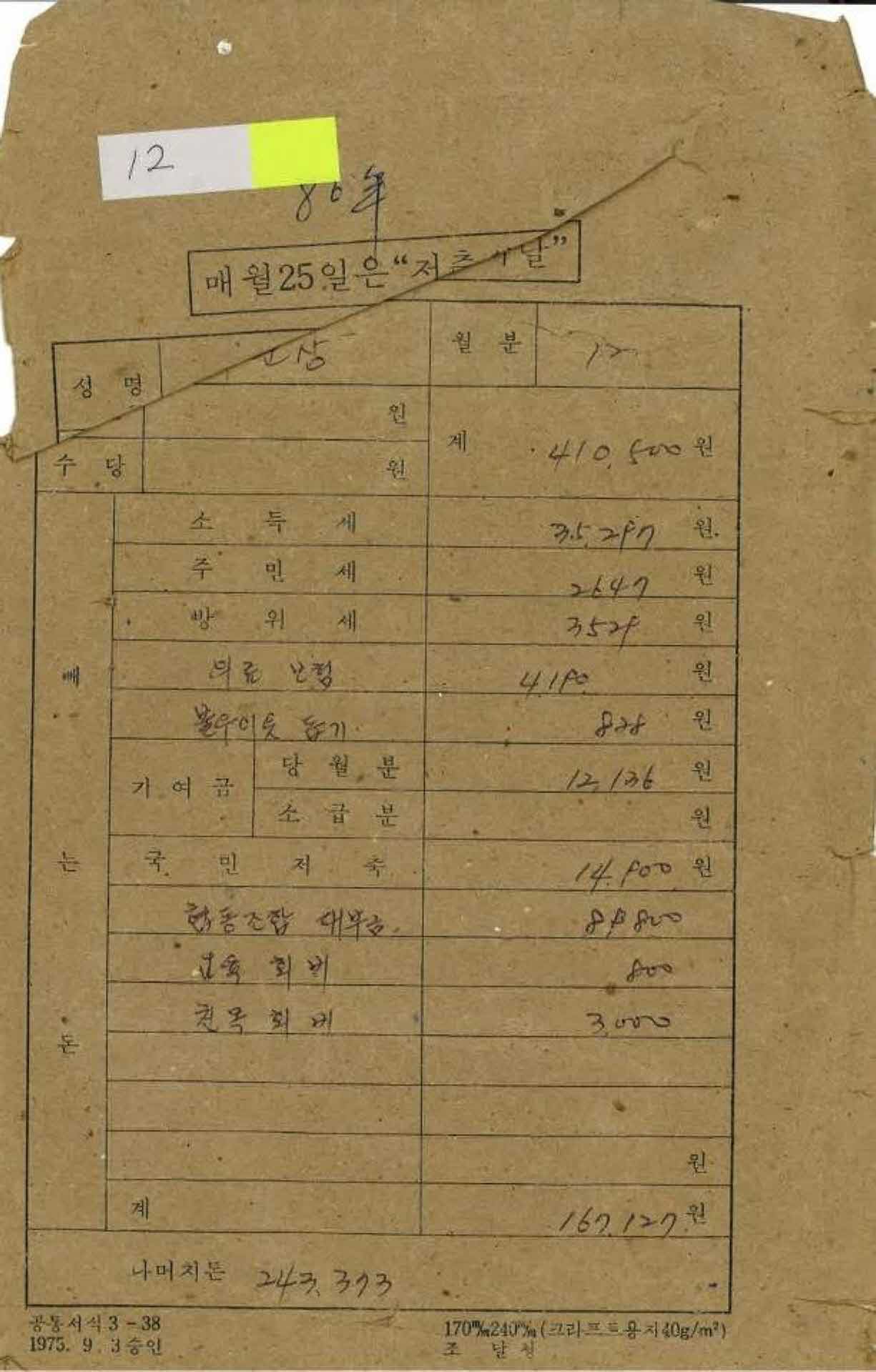 1980년 12월 교사 봉급계산서 봉투