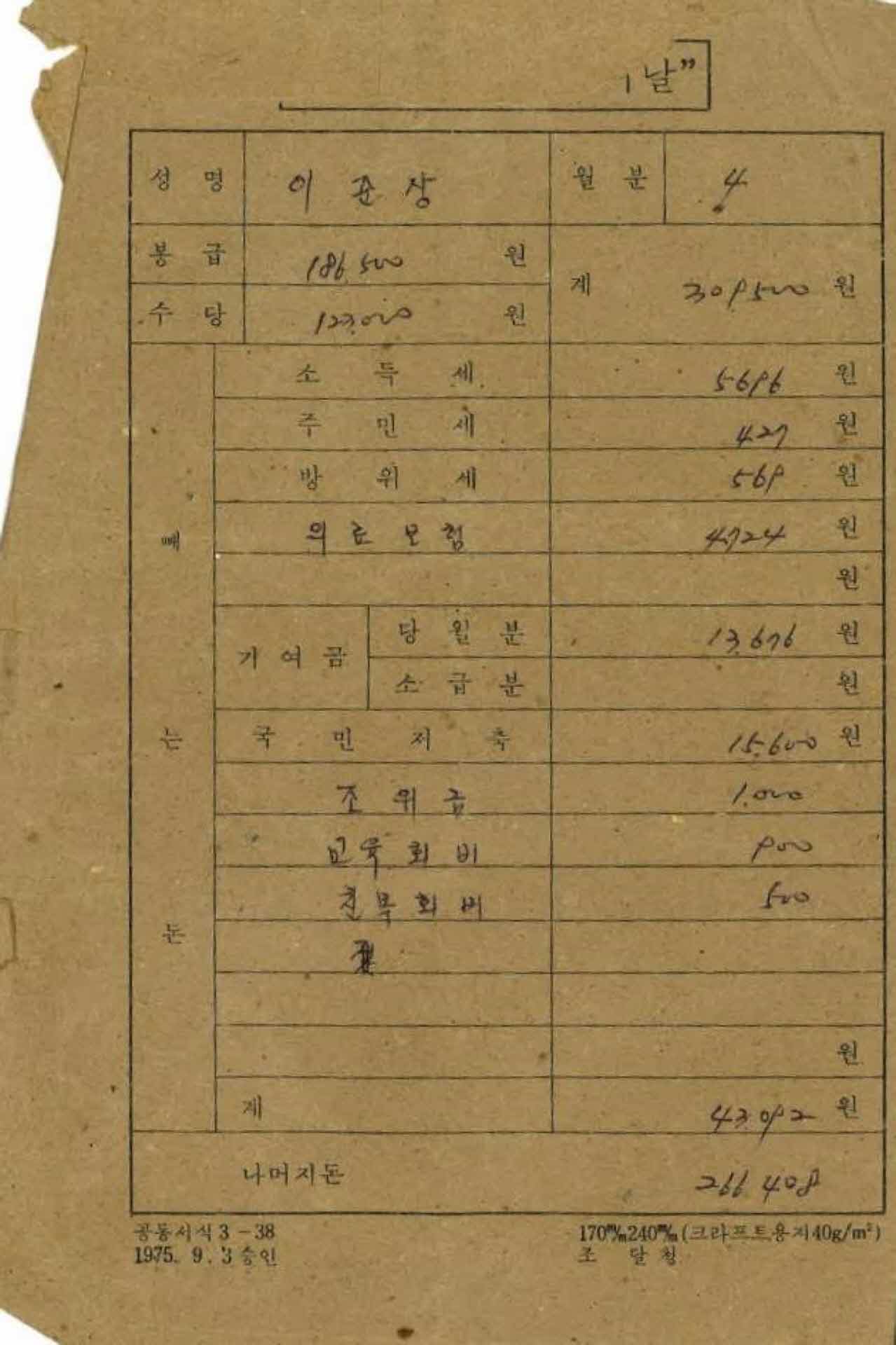 | 기록물명 | 1981년 4월 교사 봉급계산서 봉투 | ||