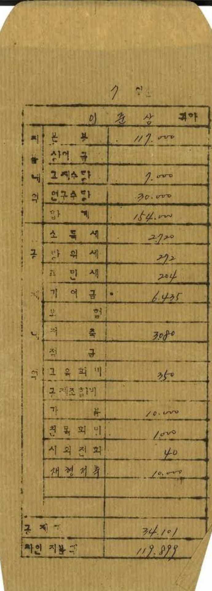 | 기록물명 | 1978년 7월 교사 봉급계산서 봉투 | ||