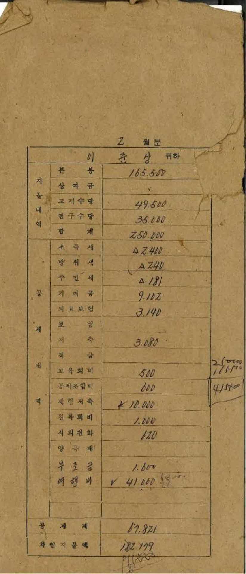 | 기록물명 | 1980년 2월 교사 봉급계산서 봉투 | ||