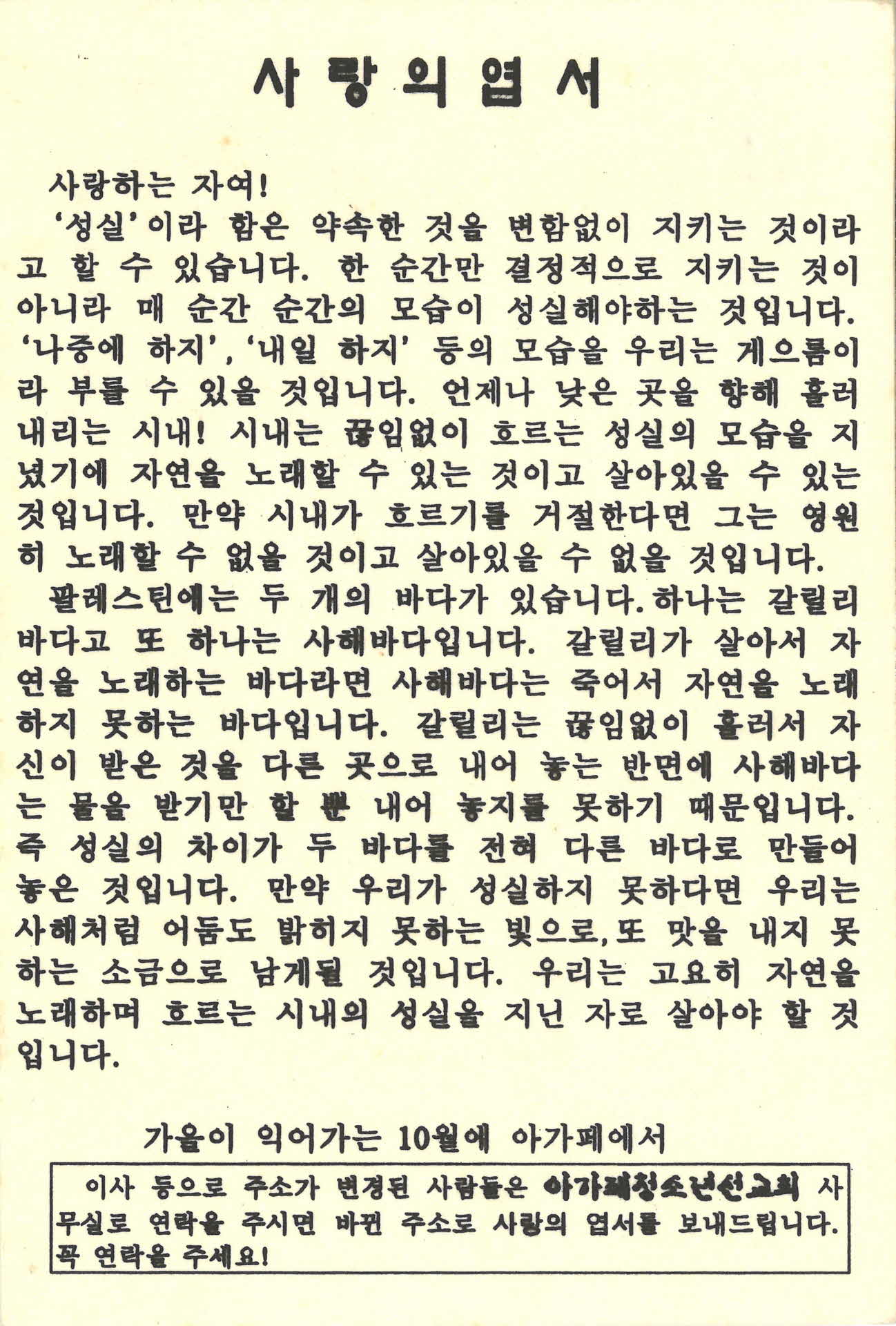 아가페청소년선교회 사랑의엽서(96년10월24일)