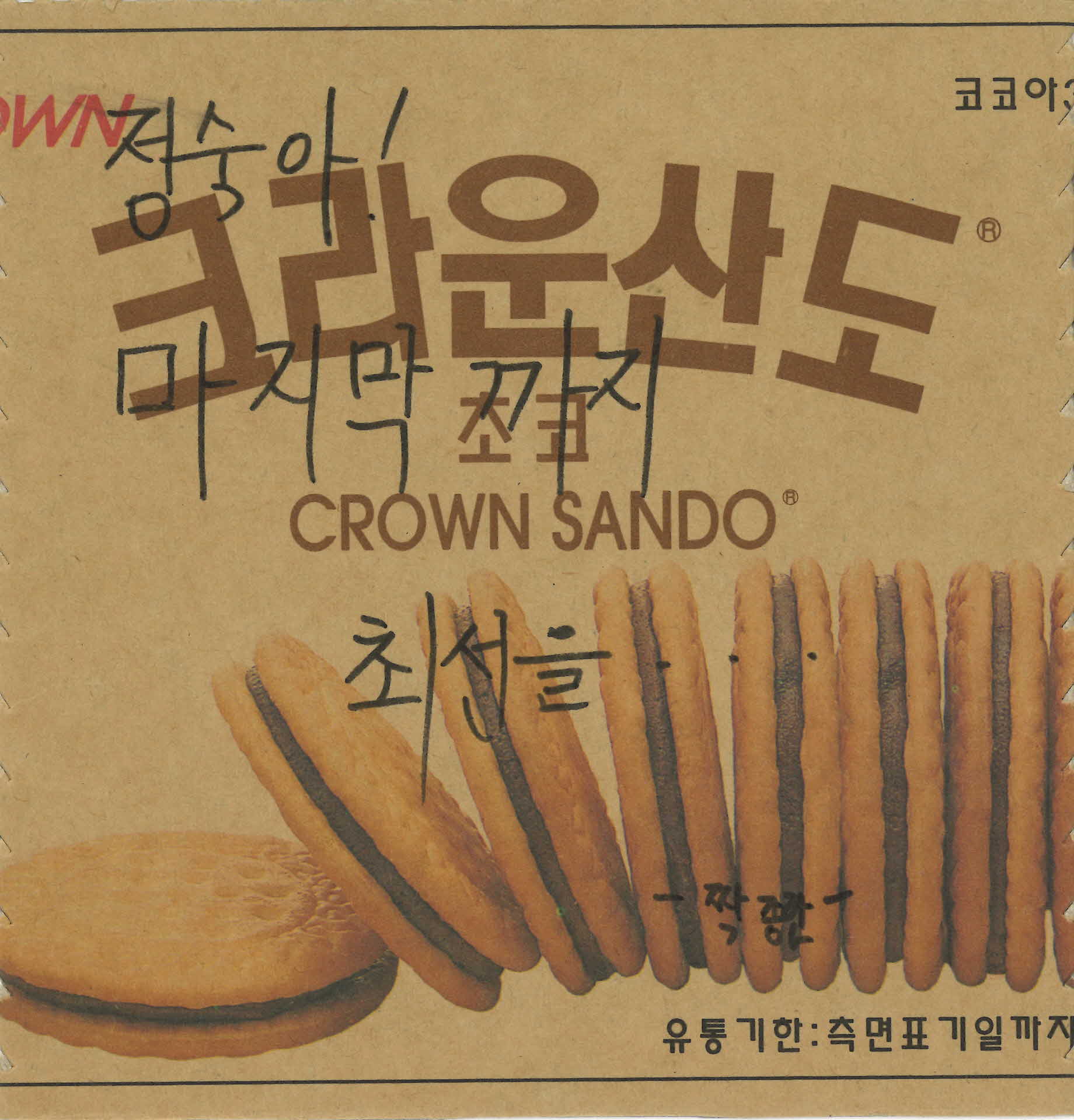 | 기록물명 | 크라운산도 포장에 적은 메시지 | ||