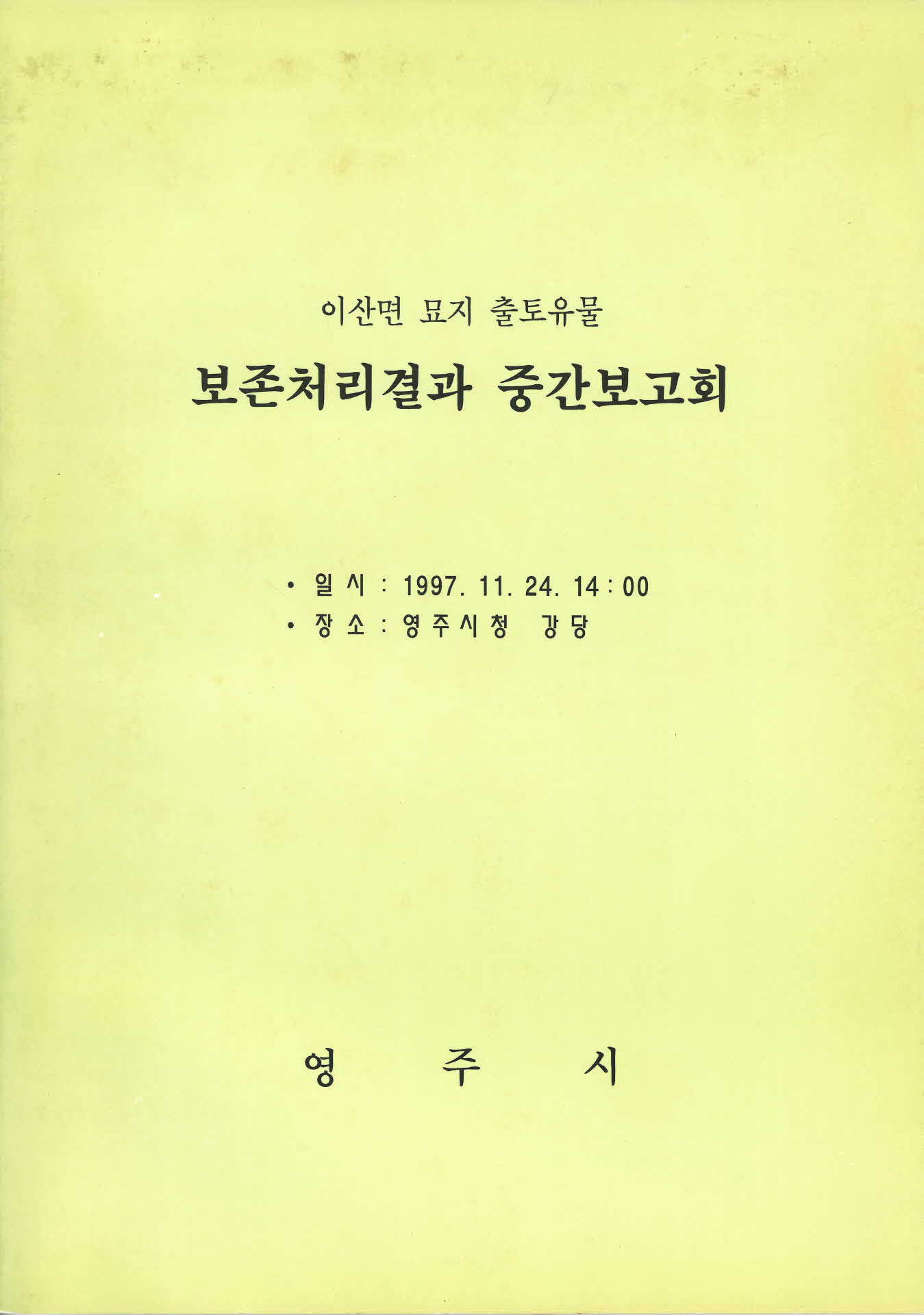 이산면 묘지 출토유물 보존처리결과 중간보고회 자료집