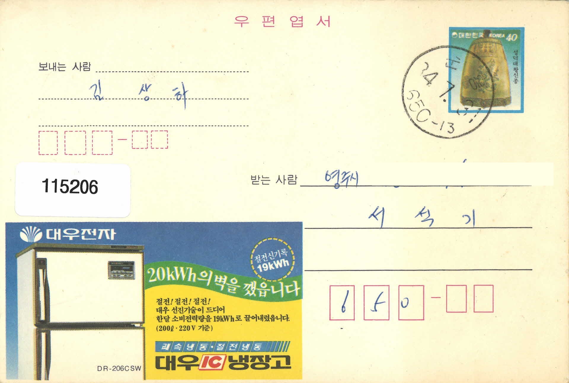 | 기록물명 | 체력장 원서접수 안내 엽서 | ||