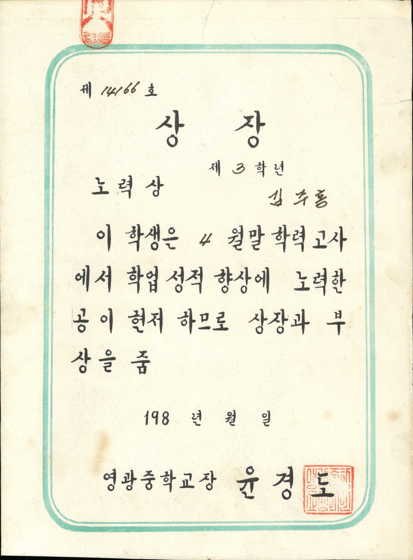 | 기록물명 | 4월말 학력고사 학업성적향상 노력상 | ||