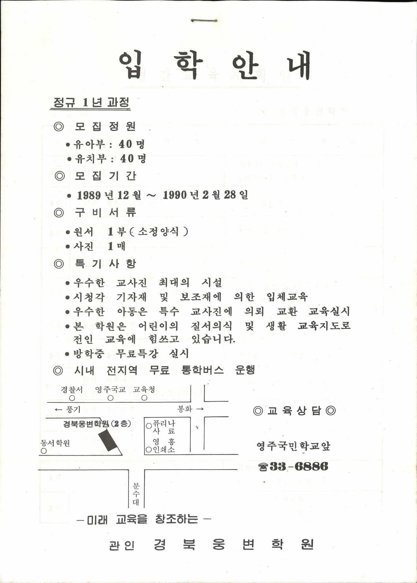 | 기록물명 | 경북웅변학원 정규 1년과정 입학안내 홍보물 | ||