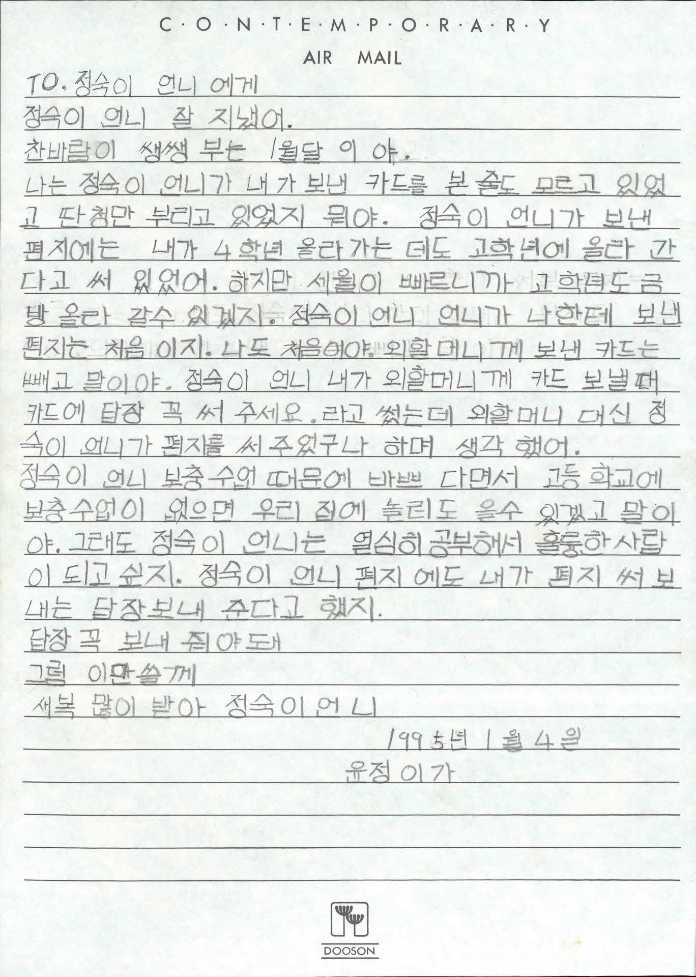 윤정이가 정숙이에게 보내는 편지