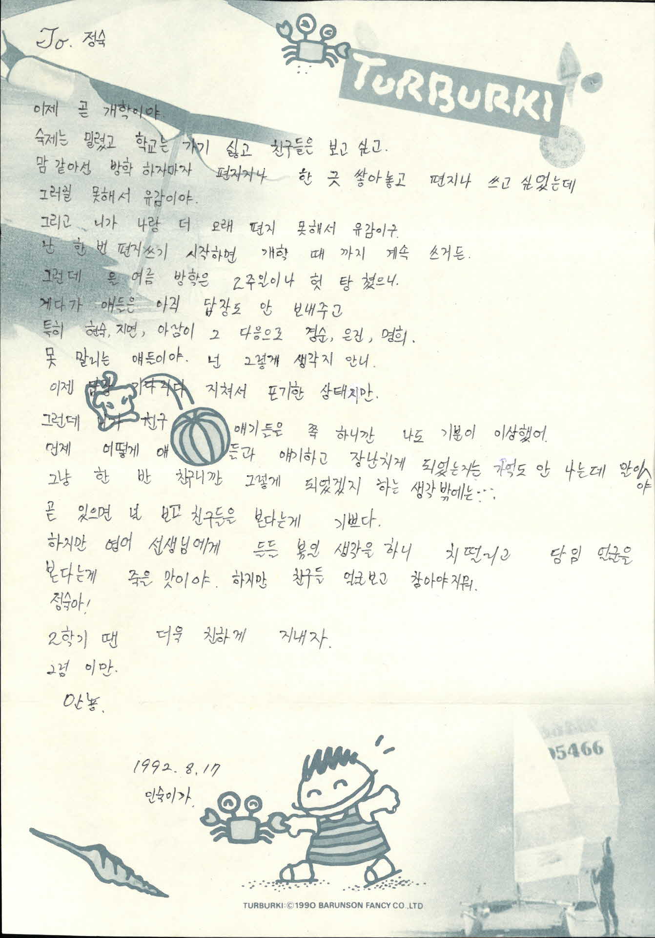 | 기록물명 | 인숙이가 정숙이에게 보내는 편지 | ||