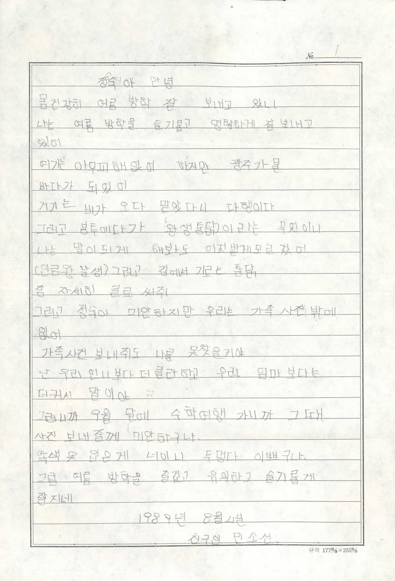| 기록물명 | 민소선이 박정숙에게 보내는 편지 | ||