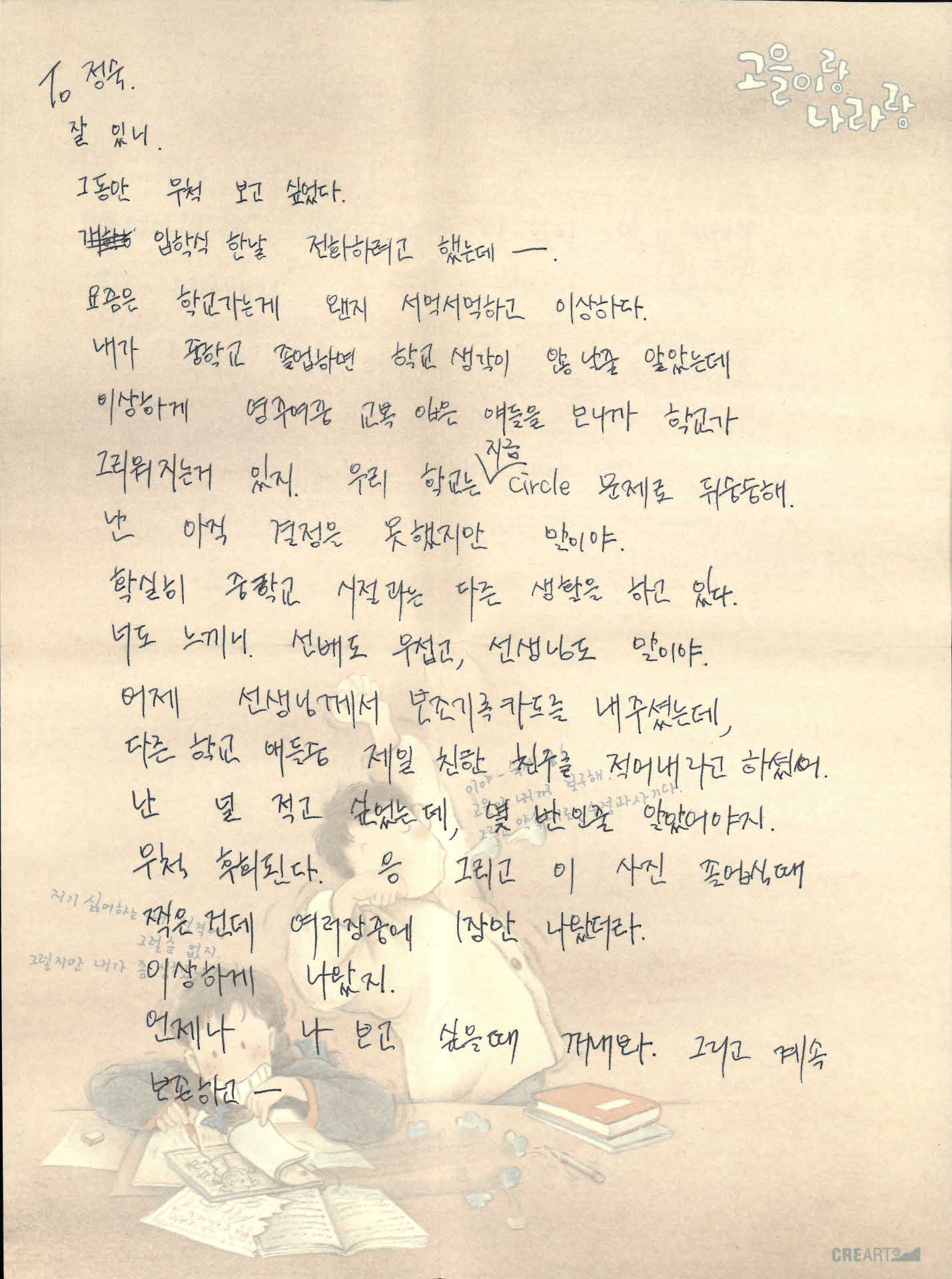 진실이가 정숙이에게 보내는 편지