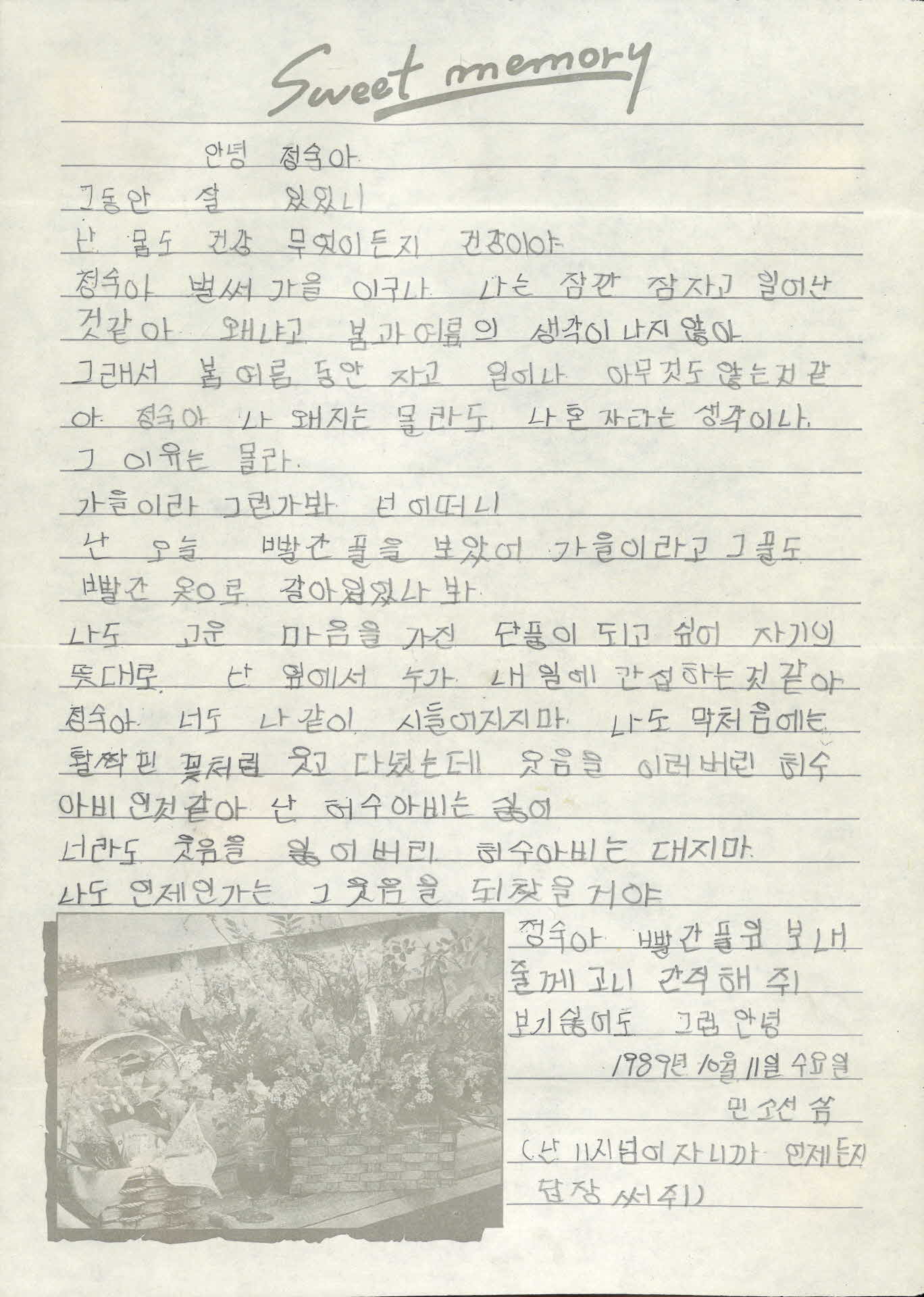 • 민소선이 박정숙에게 보내는 편지