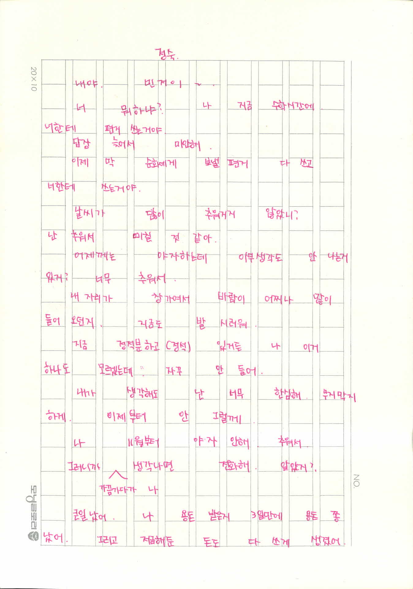 민정이가 박정숙에게 보내는 편지