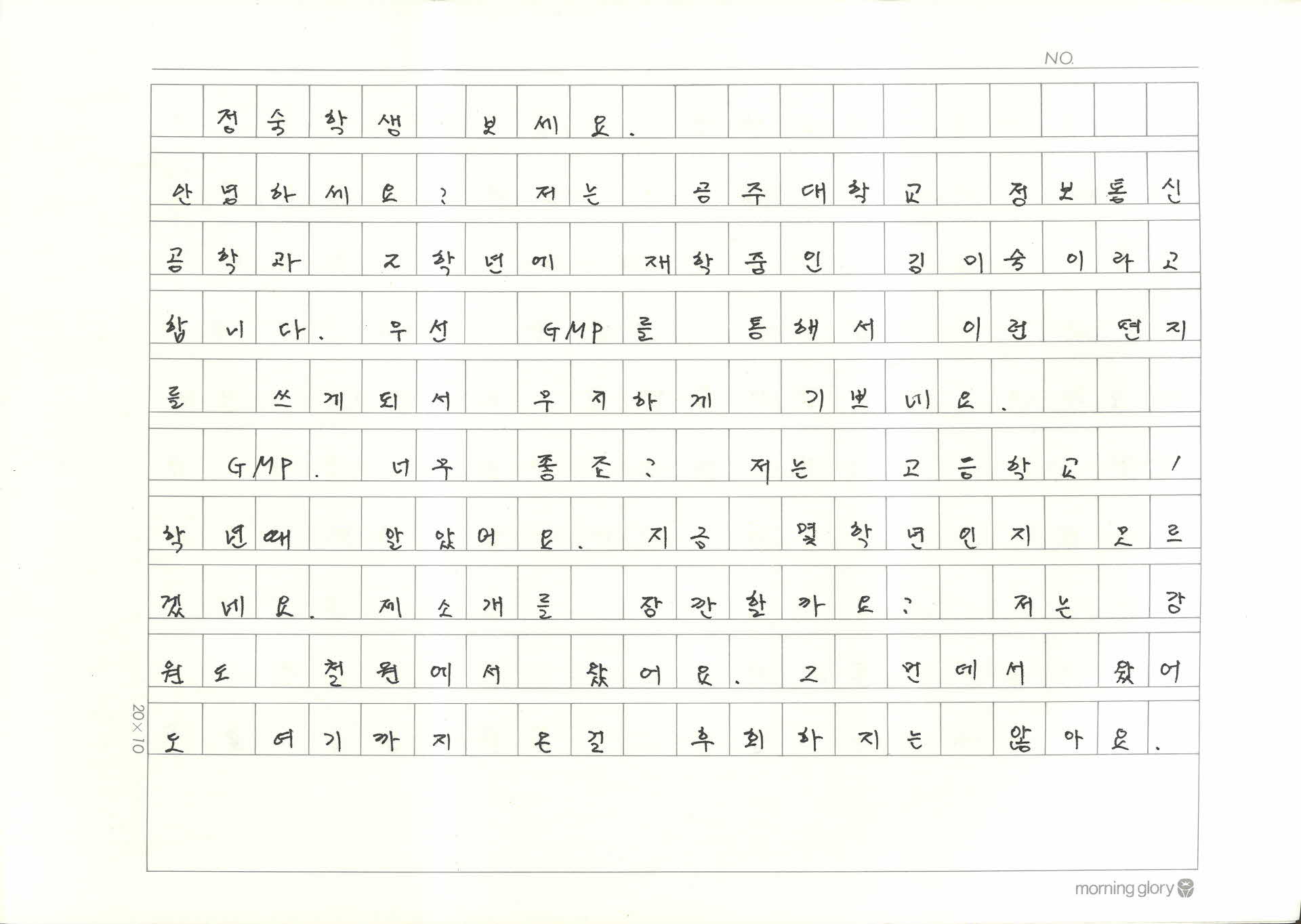 • 김미숙이 박정숙에게 보내는 편지