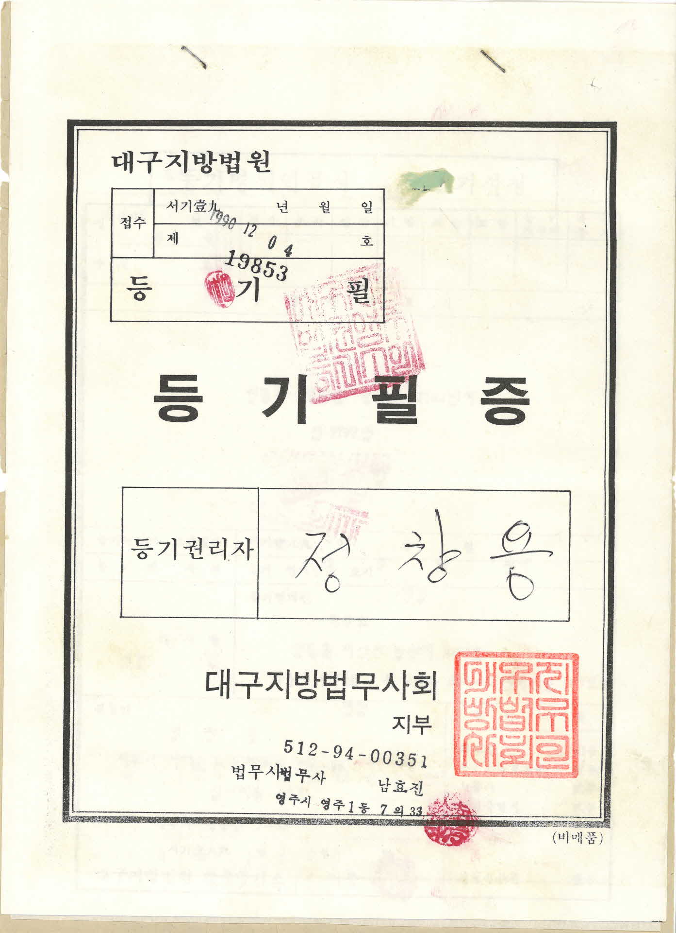 등기필증