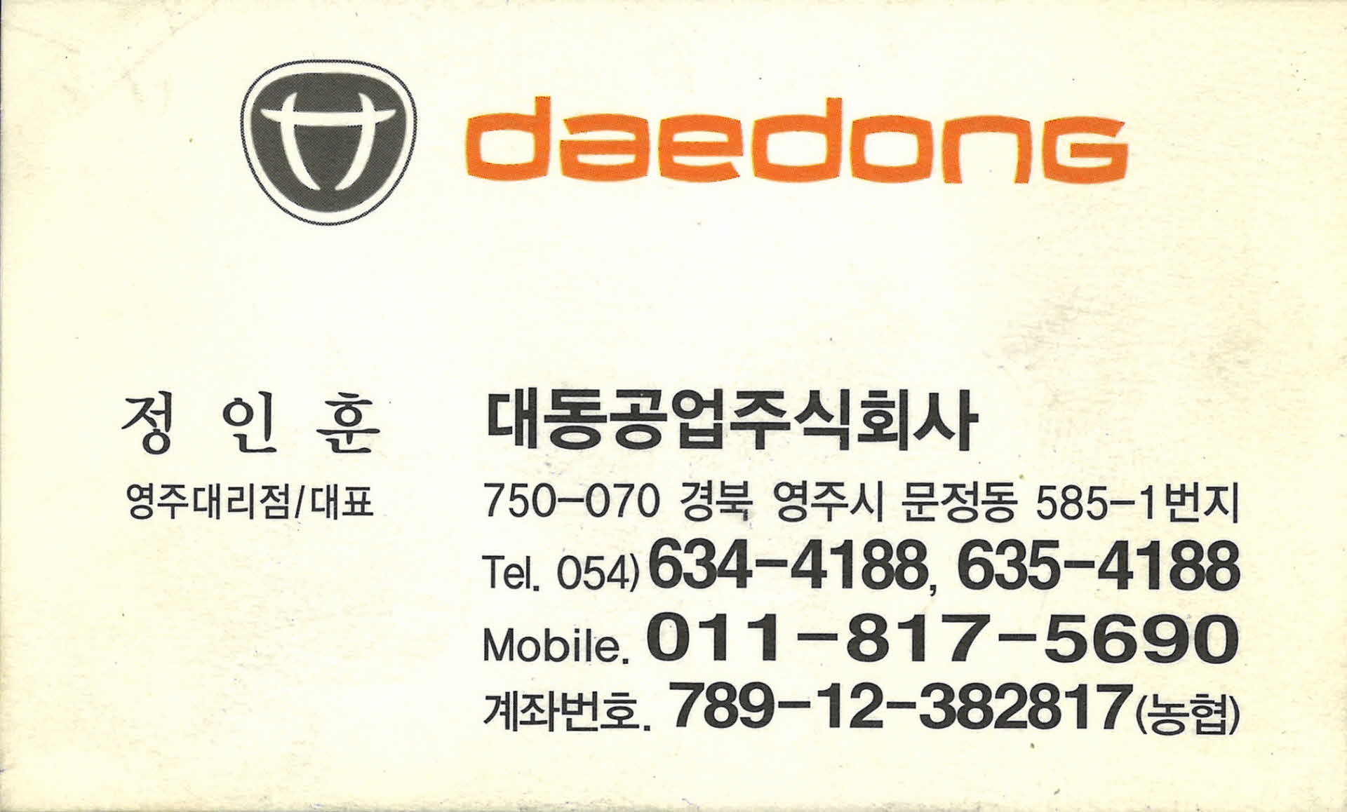 | 기록물명 | 대동공업주식회사 명함 | ||