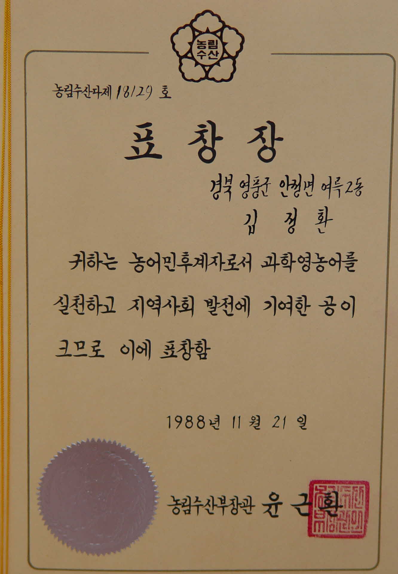 | 기록물명 | 과학영농어 실천 기여 표창장 | ||