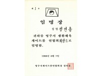 영주시 생활체육 게이트볼 연합회 회장 임명장