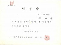 영주중앙국민학교 제1학년 4반 학급어린이회 회장 임명장