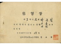 장수국민학교 전교 부회장 임명장