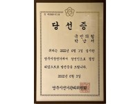 경상북도의회의원선거 영주시 제4지역선거구 당선증