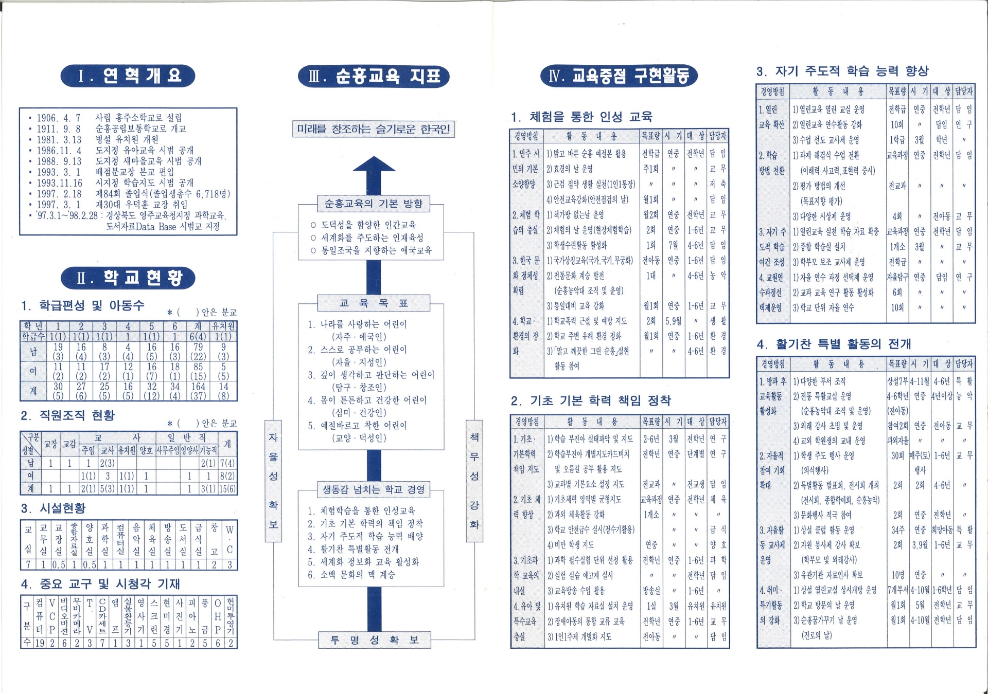1997학년도 순흥초등학교 학교요람이다. 4면으로 된 학교요람에는 교직원명부, 학교안내도, 연혁개요, 학교현황, 순흥교육 지표, 교육중점 구현활동, 특생교육활동, 병설 유치원 운영 등의 내용이 담겨 있다.