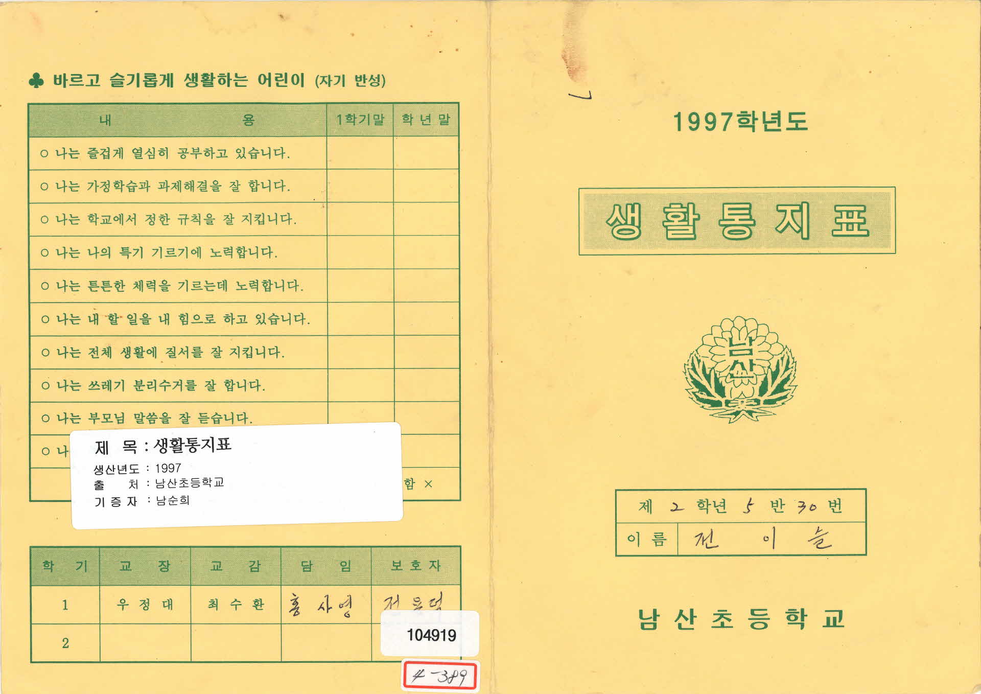 | 기록물명 | 남산초등학교 생활통지표 | ||