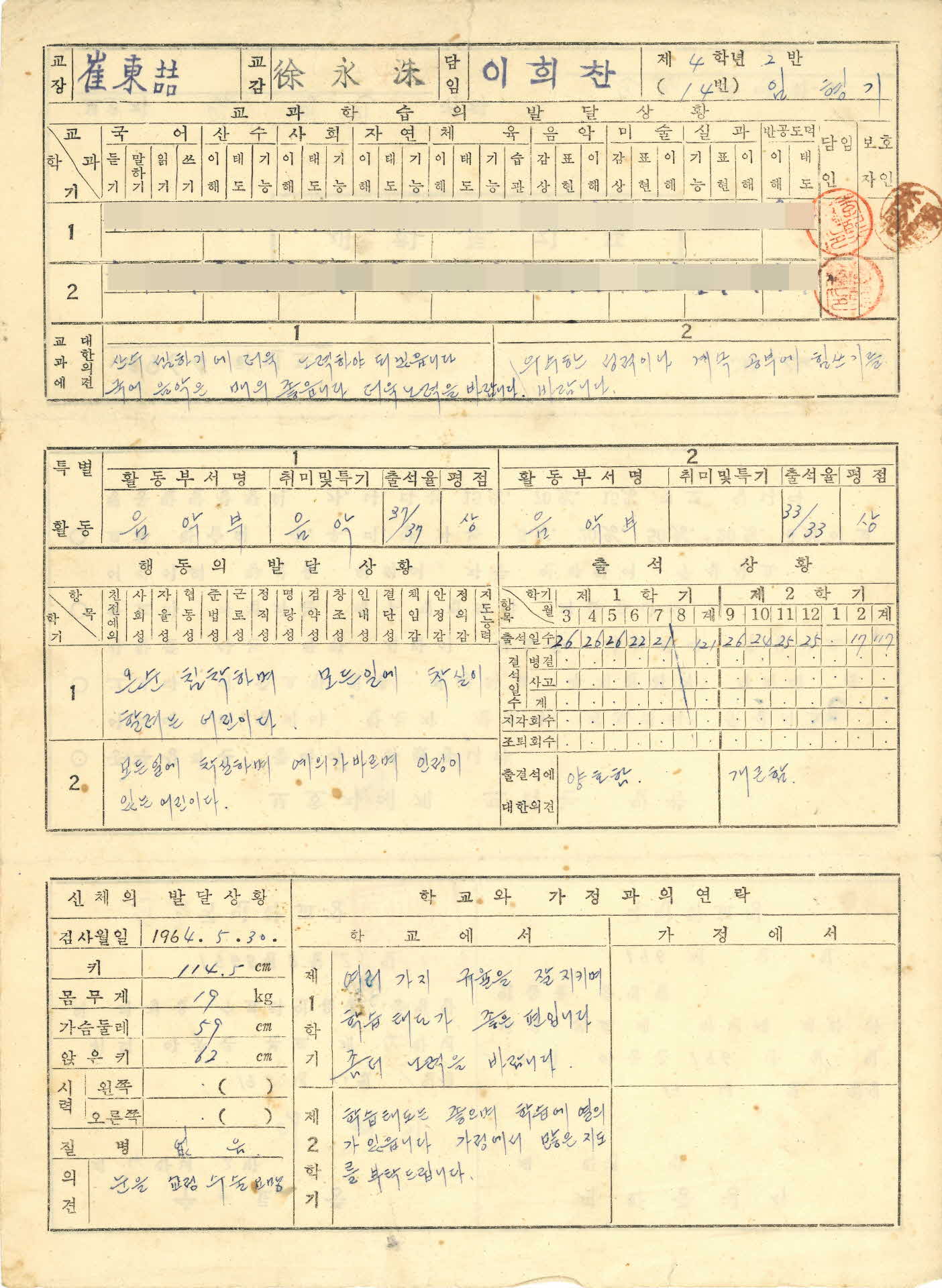 | 기록물명 | 1964학년도 순흥국민학교 생활통지표 | ||