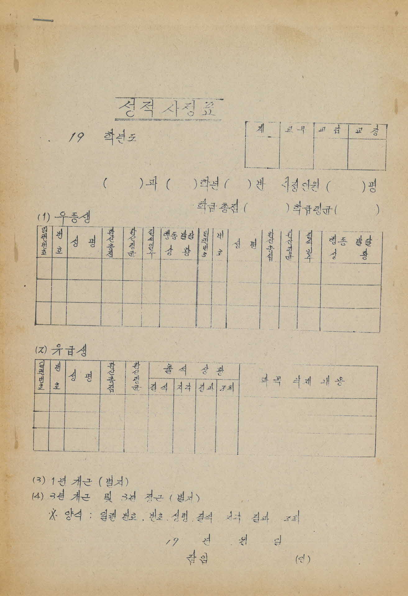 | 기록물명 | 영주공업고등학교 성적 사정표 | ||