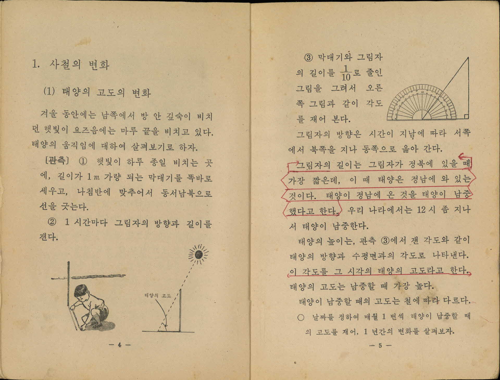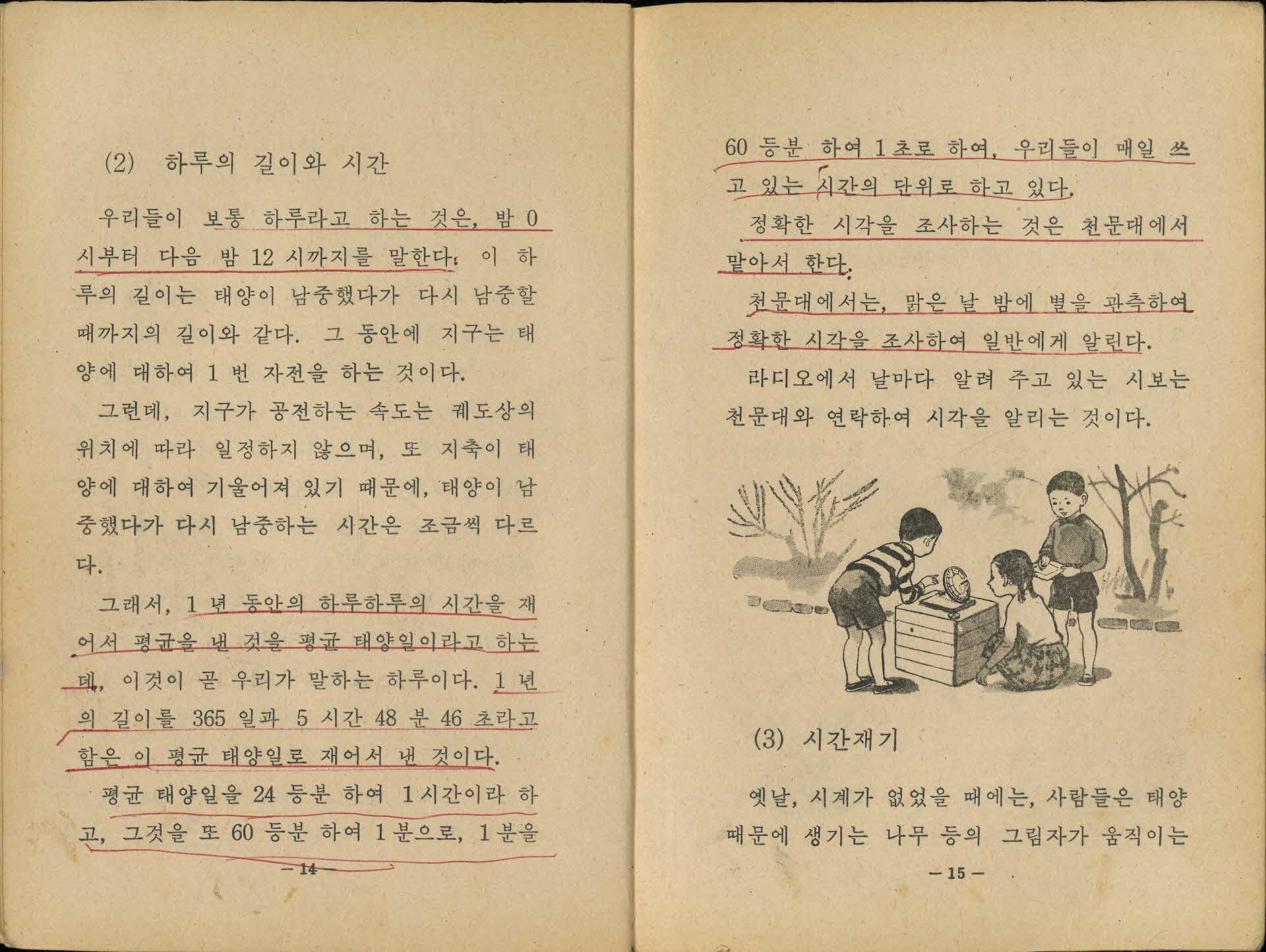 이 국민학교 6학년 1학기 『자연』 교과서는 제2차 교육과정기(1963.2.∼1973.2.)기인 1965년 8월에 문교부에서 짓고 펴낸 것을 1971년 3월에 다시 극정교과서주식회사에서 펴낸것이다. 제2차 교육과정기인 1963년 2월 15일에 개정·공포된 초등학교 교육과정(문교부령 제119호)기에는 ‘생활 중심 교육과정’을 표방하였다. 1970학년도부터 초등학교 4학년 이상 모든 교과용 도서의 앞표제지와 속표제지 사이에 국민교육헌장 게재로 확대되었다. 제2차 교육과정기의 국정교과서 개편 작업은 1963년부터 1967년까지 계속되었다. 모든 교과서에서 한자를 제거하기도 했다. 초등학교의 신편 교과서는 1963년에 1∼2학년용이 완료되어 1964년부터 사용되었다. 3∼4학년용은 1965년, 그리고 5∼6학년용은 1966년부터 사용되었다. 이 무렵 국정교과서 번각 발행사로는 국정교과서주식회사(초등학교용), 대한교과서주식회사, 고려서적주식회사, 동아서적주식회사(이상 중·고등학교용)의 4개사 체제였다.