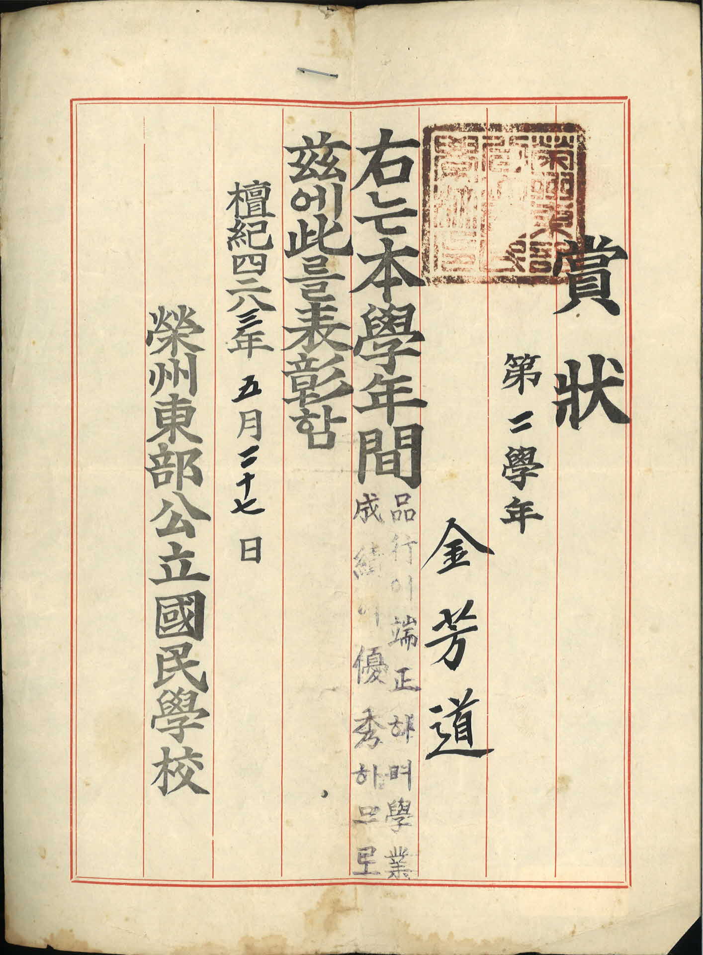 | 기록물명 | 김방도 학력우수 상장 | ||