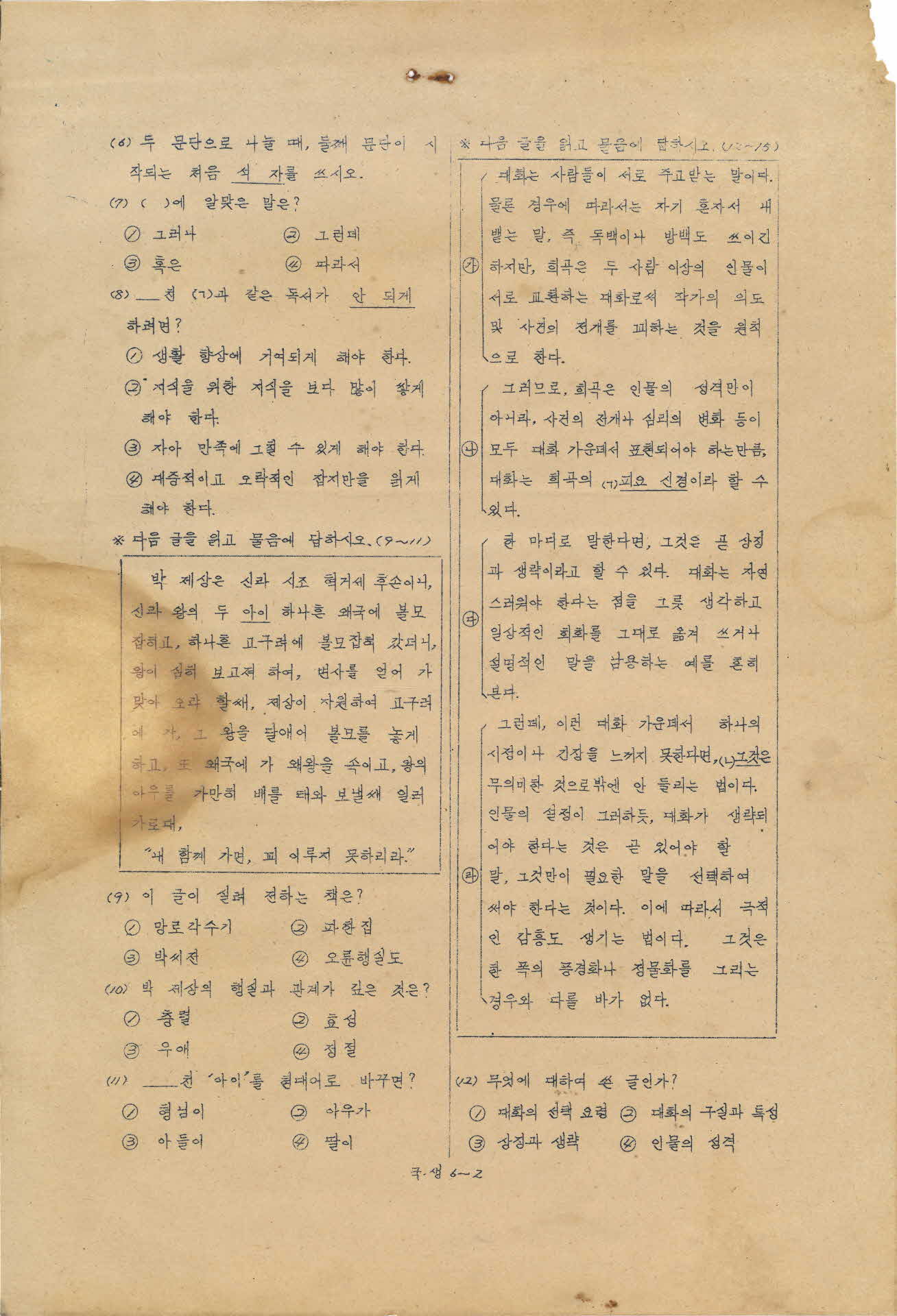 1973년 고등학교 전기 입학고사 시험지
