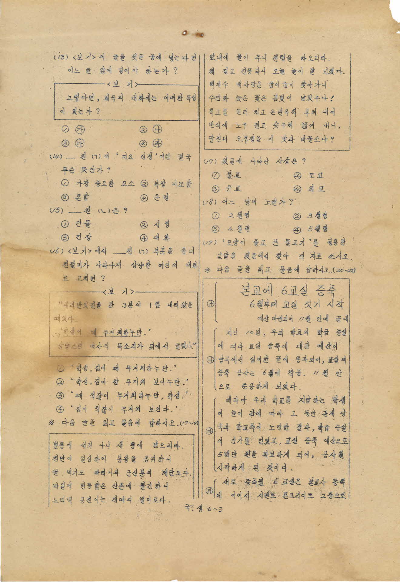 | 기록물명 | 1973년 고등학교 전기 입학고사 시험지 | ||
