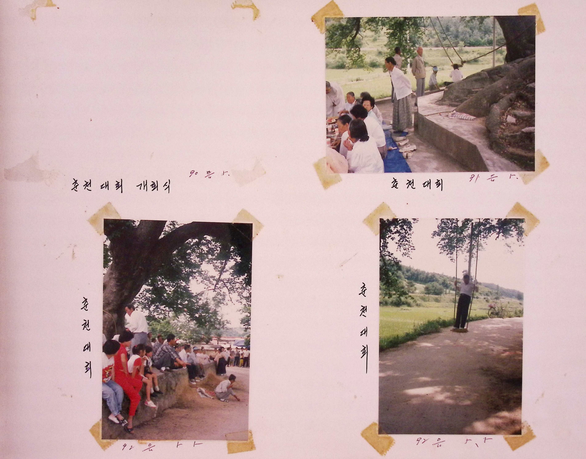 한정새마을노인정의 사진첩이다. 19쪽의 마분지에 컬러 사진이 담겨 있다. 한정마을의 전경, 마을 안길, 대청소 총회, 예절교육, 춘천대회 등의 모습을 담고 있다. 한정마을의 모습을 확인할 수 있는 귀중한 자료이다.