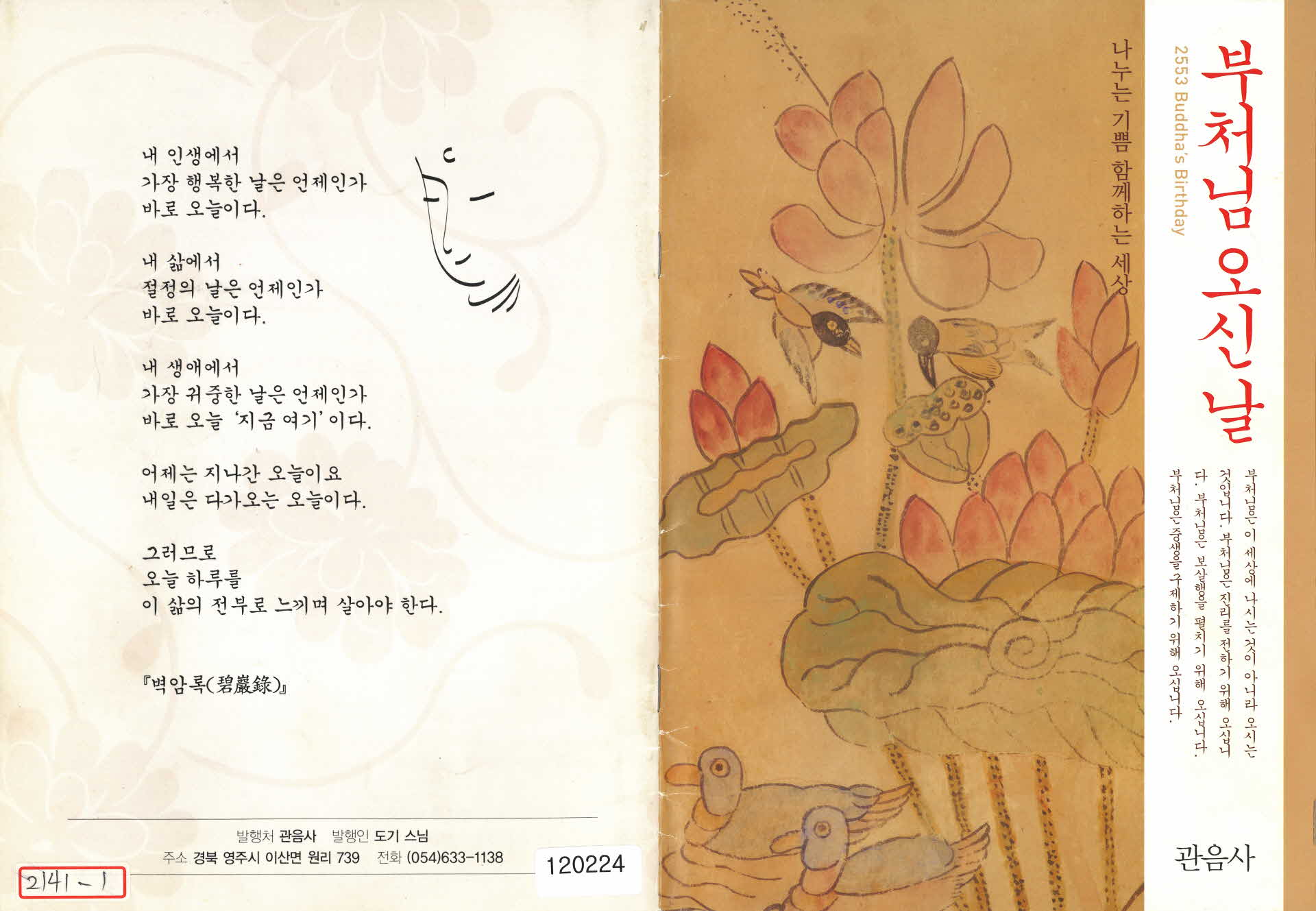 2009년 영주시 이산면 원리 소재 관음사에서 부처님 오신 날을 맞아 잡지 형태로 발행한 홍보물이다.